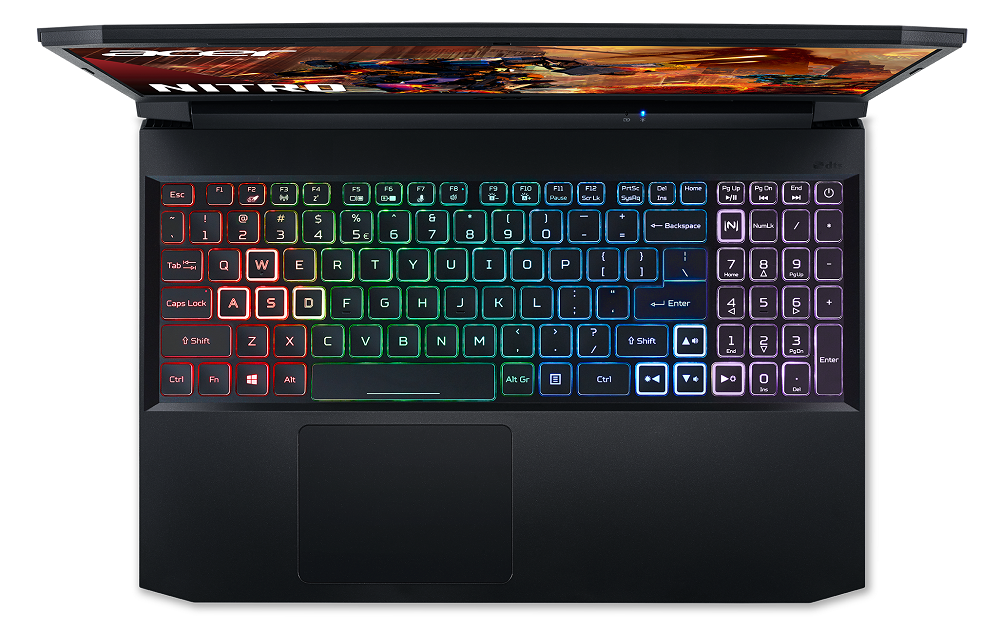 Desain eksterior tetap hadir membawa ciri khasnya, melalui aksen warna merah pada sirip di bagian belakang laptop. Terdapat pula backlitRGB keyboarddengan 4 zonayang hadir di Acer Nitro 5, ini memperkaya pengalaman pengalaman yang lebih imersif.