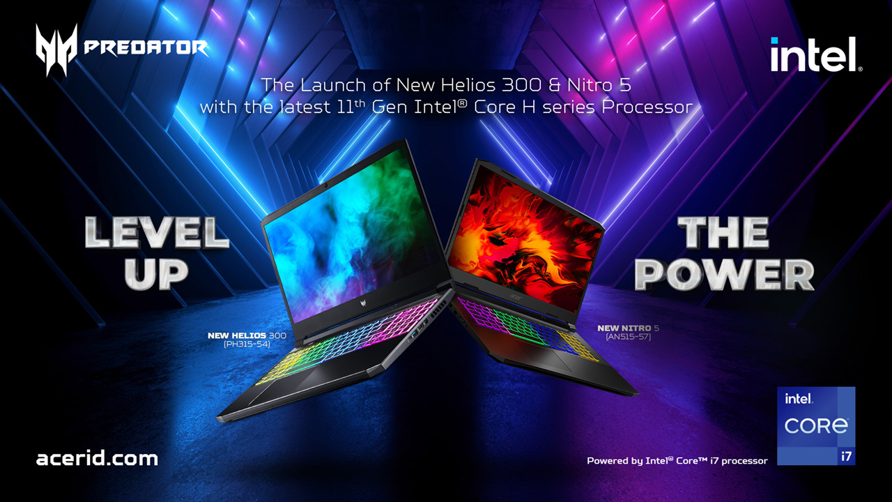 Acer Nitro 5 (AN515-57) generasi baru hadir dengan kekuatan gabungan dari prosesor Intel Core Seri H Generasi ke-11, GPU NVIDIA GeForce RTX 30 Series, dan hingga 16 GB RAM DDR4. Sedangkan untuk Predator Helios 300 kini ditenagai dengan prosesor Intel Core Seri H Generasi ke-11 yang dikombinasikan dengan GPU NVIDIA GeForce RTX 3060 / RTX 3070 terbaru dengan kemampuan refresh rate 165Hz dengan QHD IPS panel, dan dukungan memori DDR4 hingga kapasitas 32GB untuk memberikan kinerja yang dibutuhkan para gamer dalam menaklukkan judul-judul game masa kini dan generasi berikutnya, seperti Cyberpunk 2077 dan judul-judul game kelas atas lainnya