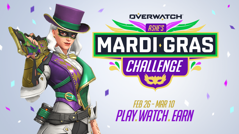 Mulai tanggal 26 Februari hingga 10 Maret, pemain bisa bersenang-senang dan mendapatkan enam spray, dua player icon, dan skin epic Mardi Gras Ashe (dan Bob) dengan total sembilan hadiah baru.