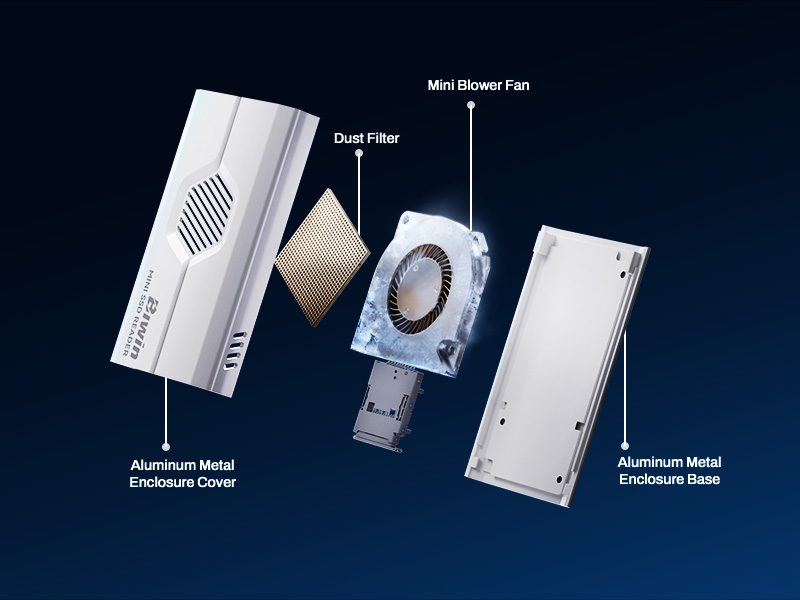 Untuk menjaga performa tetap stabil, Biwin RD510 dilengkapi dengan sistem pendingin aktif berupa kipas internal. Fitur ini berfungsi untuk mengurangi potensi peningkatan suhu saat penggunaan intensif, sehingga performa tetap optimal tanpa mengalami penurunan akibat thermal throttling.