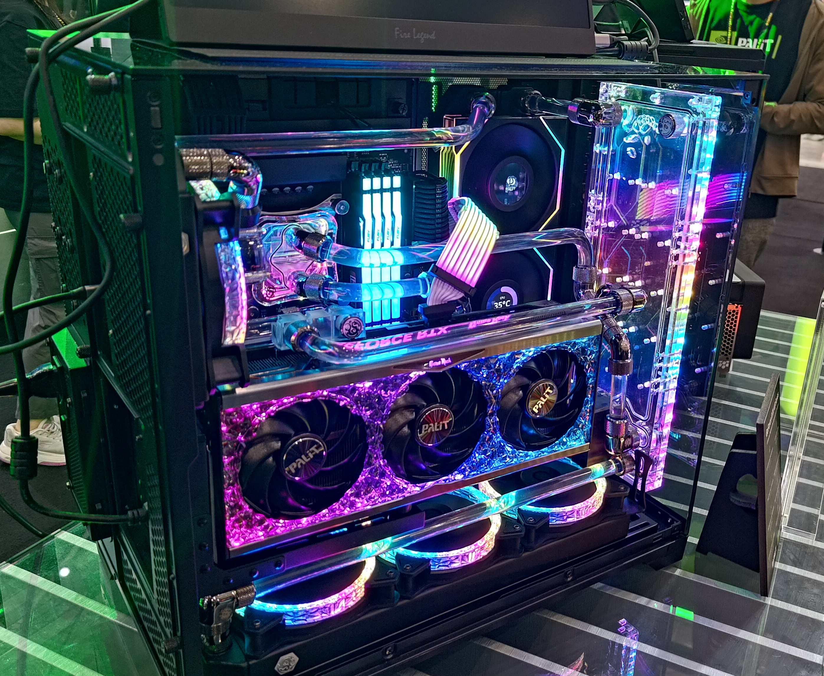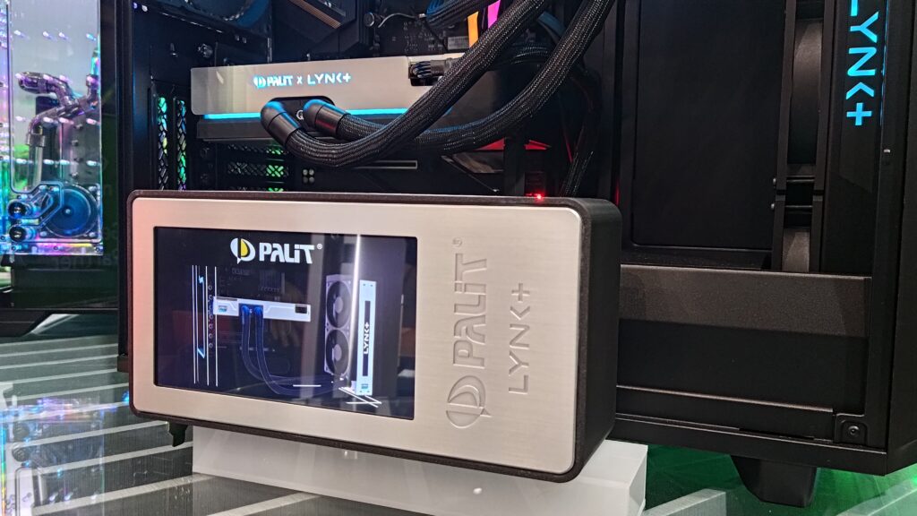 Selain itu, Palit mengungkapkan bahwa mereka sedang mengerjakan kartu grafis kelas enthusiast yang memenuhi spesifikasi SFF-Ready NVIDIA yang baru. Meski kartu grafis ini belum ditampilkan, Palit berkolaborasi dengan perancang pendingin cairan asal Jerman, LYNK, untuk menciptakan kartu grafis berpendingin cairan AIO.