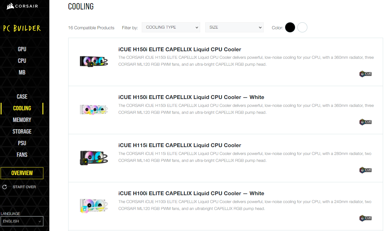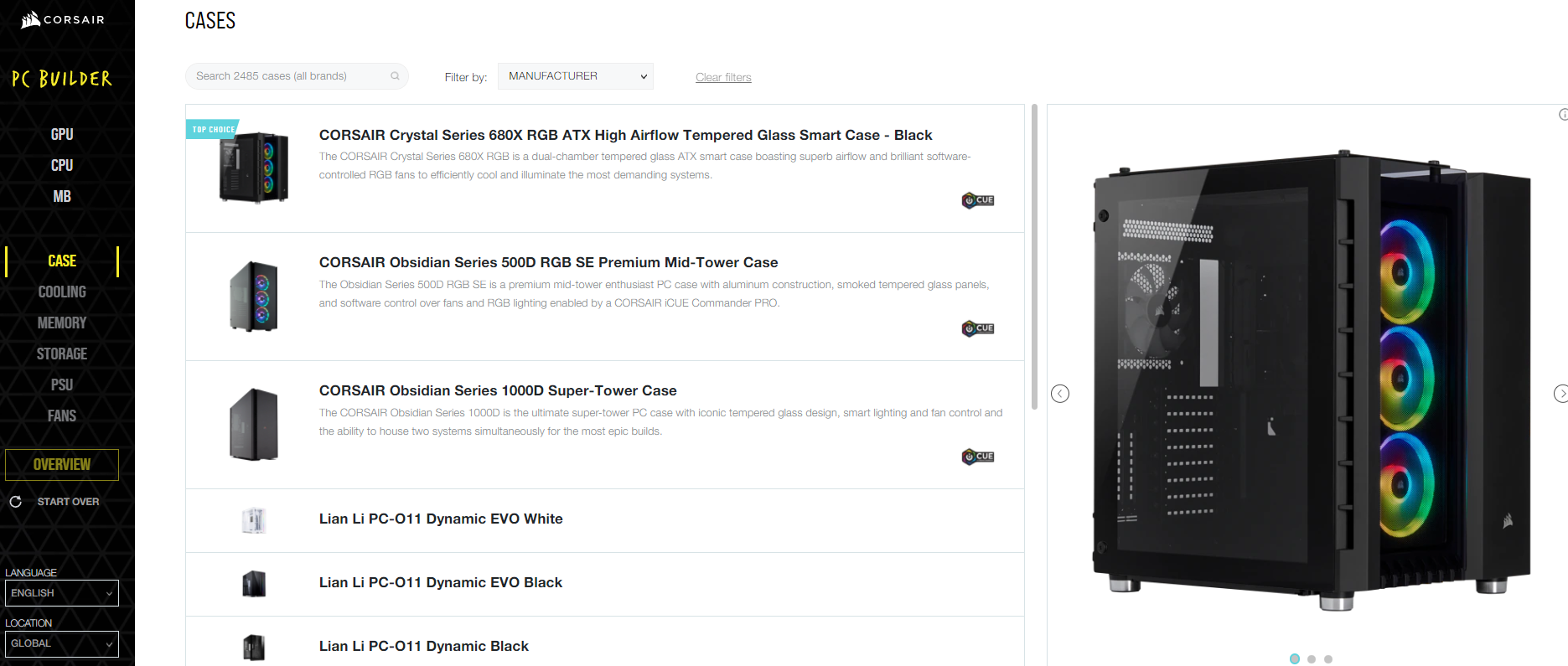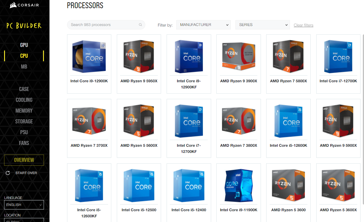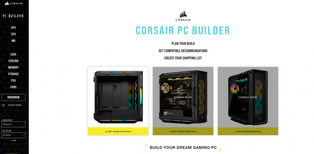 CORSAIR PC Builder menyusun daftar list komponen untuk kebutuhan PC Gaming Anda, gambaran pada database yang mencakup spesifikasi lengkap dari ribuan komponen PC yang saat ini dipasarkan. Pengguna hanya perlu menentukan prosesor Intel® atau AMD® pilihan mereka, kartu grafis, dan motherboard, selanjutnya CORSAIR PC Builder akan menawarkan daftar komponen lengkap yang terbaik dari CORSAIR, semuanya dijamin untuk kompatibilitas dengan sistem yang Anda inginkan. PC Builder juga memastikan bahwa semua bagian akan pas di dalam casing pilihan Anda, baik itu casing CORSAIR atau pihak ketiga. Hasilnya adalah kombinasi belanja yang sempurna dan cermat, diisi dengan apa yang Anda butuhkan untuk merakit PC yang optimal untuk menjalankan game favorit Anda.