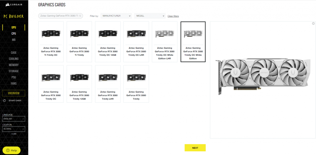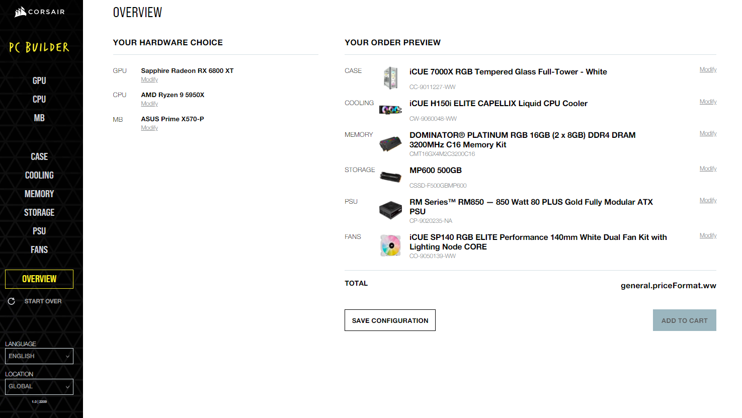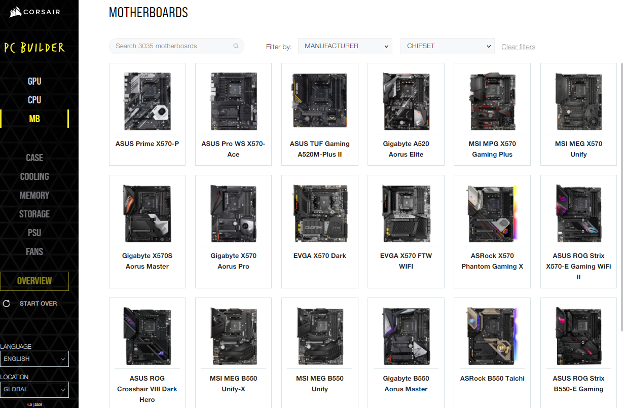CORSAIR PC Builder menyusun daftar list komponen untuk kebutuhan PC Gaming Anda, gambaran pada database yang mencakup spesifikasi lengkap dari ribuan komponen PC yang saat ini dipasarkan. Pengguna hanya perlu menentukan prosesor Intel® atau AMD® pilihan mereka, kartu grafis, dan motherboard, selanjutnya CORSAIR PC Builder akan menawarkan daftar komponen lengkap yang terbaik dari CORSAIR, semuanya dijamin untuk kompatibilitas dengan sistem yang Anda inginkan. PC Builder juga memastikan bahwa semua bagian akan pas di dalam casing pilihan Anda, baik itu casing CORSAIR atau pihak ketiga. Hasilnya adalah kombinasi belanja yang sempurna dan cermat, diisi dengan apa yang Anda butuhkan untuk merakit PC yang optimal untuk menjalankan game favorit Anda.