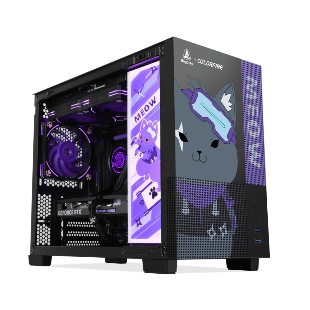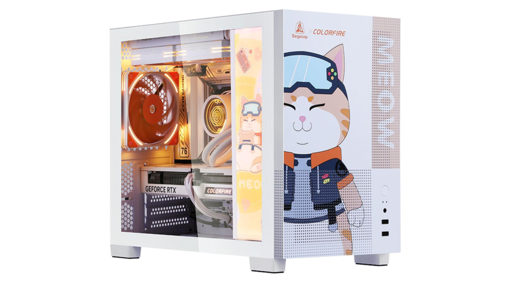 Salah satu sorotan utama adalah COLORFIRE MEOW-X Gaming PC, sebuah setup gaming yang tampil beda dengan tema kucing yang playful.
