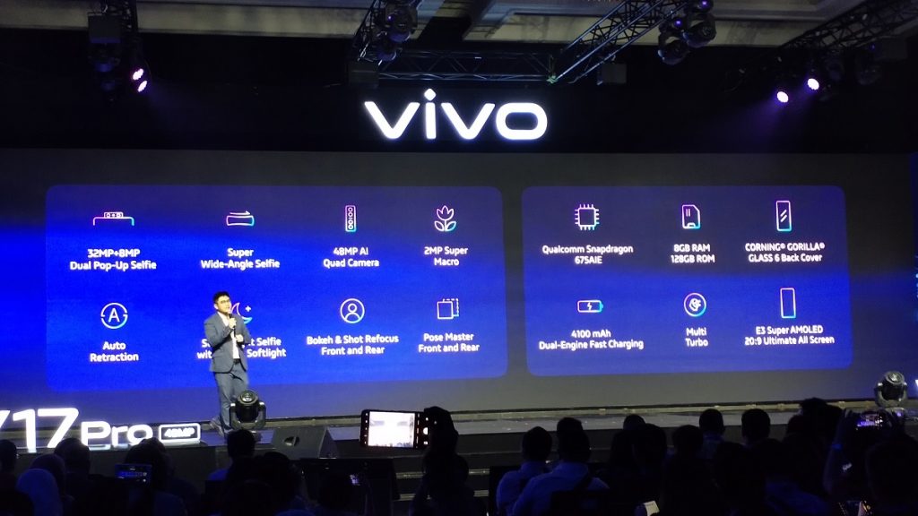 “Ricky Bunardi, Product Manager PT vivo Mobile Indonesia menyatakan, “Kami melihat antusiasme yang sangat besar akan smartphone dengan teknologi kamera yang canggih. Untuk itulah kami menghadirkan gebrakan baru di seri vivo V17 Pro ini, dengan adanya dua pop-up kamera depan serta empat kamera belakang yang tentunya akan memberikan hasil foto yang lebih profesional kepada konsumen.”
