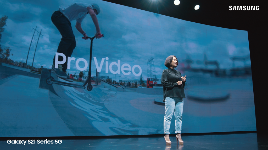 Pro-Video dengan perekaman 8K yang didukung Ultimate Super Steady pada 60fps dan Multi-Mic Recording yang bisa disesuaikan sumber suaranya berdasarkan kebutuhan. Jadi hanya dengan smartphone, saya bisa menciptakan gambar yang stabil dengan audio jernih sehingga menghasilkan konten video epik selayaknya kamera profesional. Bahkan saya menyaksikan sendiri pengalaman video- making acara peluncuran hari ini direkam sepenuhnya secara epik menggunakan Galaxy S21 Ultra 5G.”