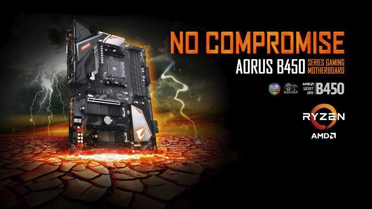 Taipei, Taiwan, 31 Juli, 2018 – GIGABYTE TECHNOLOGY Co. Ltd, produsen motherboard dan kartu grafis terkemuka, hari ini mengumumkan perilisan seri Motherboard AORUS B450 yang baru. Model terbaru ini mendukung penuh prosesor AMD Ryzen dan menggunakan teknologi inovatif termasuk AMD StoreMI, fitur mempercepat HDD tradisional ke tingkat kecepatan yang hanya ditemukan di SSD. Keunggulan dalam penggunaan komputer melalui implementasi fitur-fitur premium seperti I/O panel belakang terintegrasi, konektivitas Wi-Fi generasi terbaru dan USB tipe-C. Desain armor terbaru fokus pada kontur elang AORUS dan solusi pendinginan terbaik pada area paling penting di motherboard.