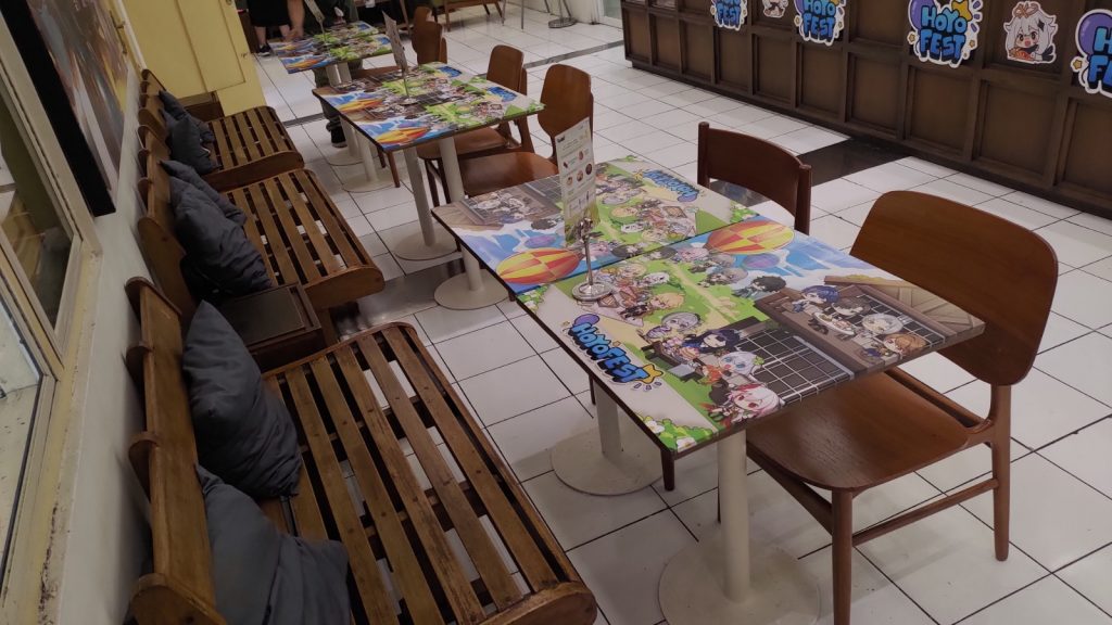Traveler akan berada di tempat yang nyaman dan menyenangkan karena suasana yang mendukung, mulai dari kafe bertema sesuai dengan temanya masing-masing, makanan bertema yang menggugah selera, dan bertemu banyak teman yang memiliki ketertarikan sama pada dunia HoYoverse.