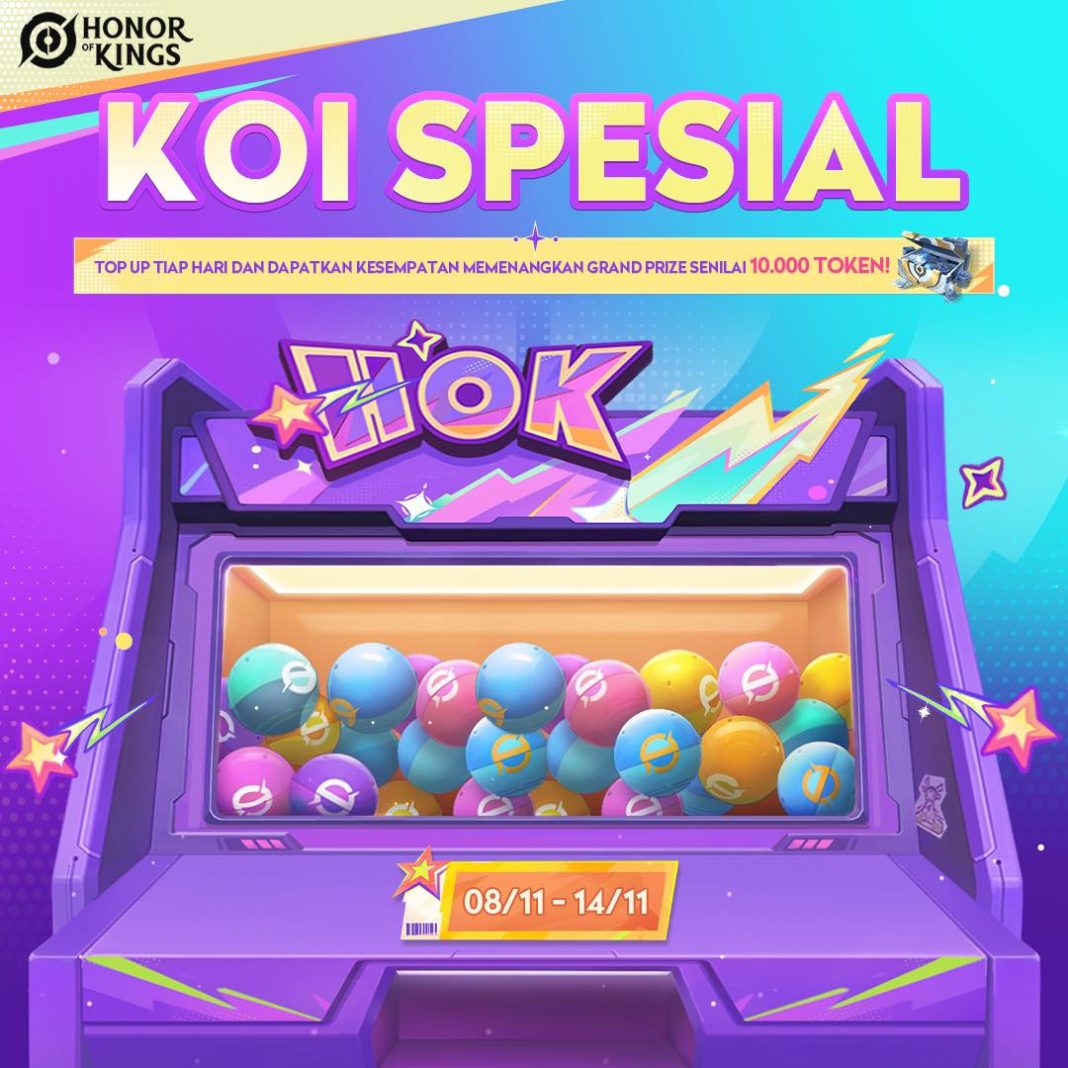 Hardwareholic – Mulai tanggal 8 hingga 14 November, Honor of Kings menghadirkan event spesial untuk para pemainnya dengan hadiah besar berupa 10.000 token setiap harinya! Dalam event ini, pemain yang melakukan pembelian harian hingga jumlah tertentu akan secara otomatis mendapatkan nomor undian, yang memberi kesempatan untuk memenangkan token tersebut. Setiap hari, sepuluh pemain beruntung akan dipilih sebagai pemenang dan mendapatkan hadiah token ini.