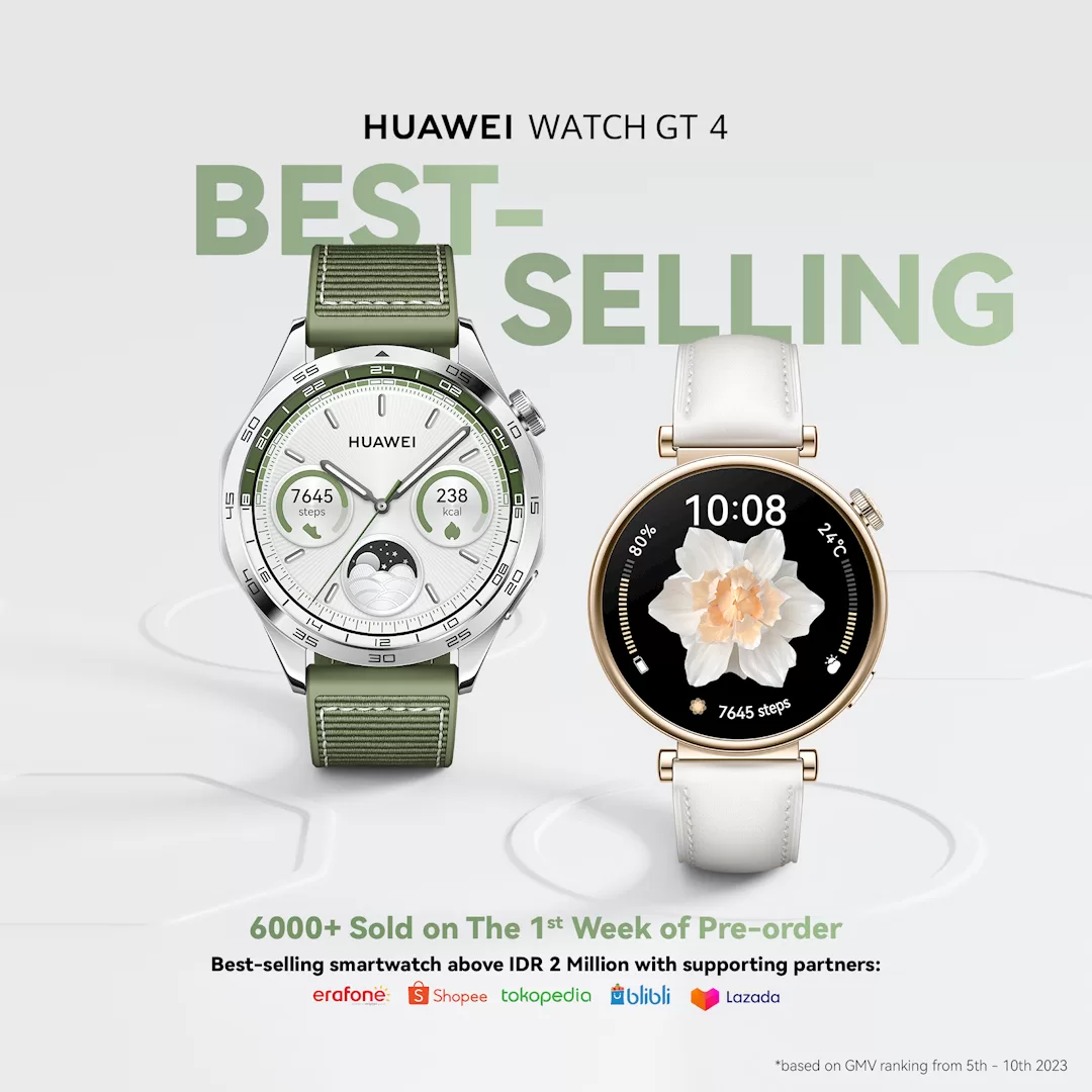 Hardwarweholic – Huawei Device Indonesia dengan bangga mengumumkan pencapaian gemilang dari peluncuran HUAWEI WATCH GT 4 di Indonesia. Penjualan pre-order telah melampaui ekspektasi, sukses terjual lebih dari 6000 unit dalam seminggu dan berhasil menjadi smartwatch dengan penjualan teratas pada rentang harga di atas 2 juta berdasarkan GMV (Gross Merchandising Value).
