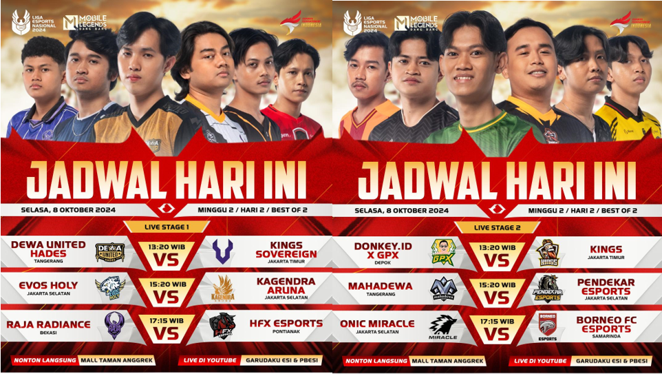 Dewa United Hades dan Evos Holy menjadi tim yang paling disorot di Liga 1 Esports Nasional 2024. Keduanya mencatat kemenangan beruntun sejak awal liga, dan penggemar serta analis menantikan apakah mereka mampu mempertahankan momentum. Dewa United Hades akan menghadapi Kings Sovereign, tim kuat dari Jakarta Timur, sementara Evos Holy akan melawan Kagendra Aruna, tim dengan strategi taktis yang bisa memberi perlawanan sengit. Duel-duel ini diprediksi akan sangat menentukan klasemen sementara.