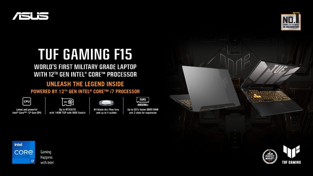 Tidak hanya jajaran laptop ROG, ASUS juga menghadirkan jajaran laptop TUF Gaming F15 terbaru dalam waktu dekat di Indonesia. Seri TUF Gaming kembali hadir dengan desain baru dan tetap menawarkan pengalaman gaming terbaik serta durabilitas bodi yang tangguh.