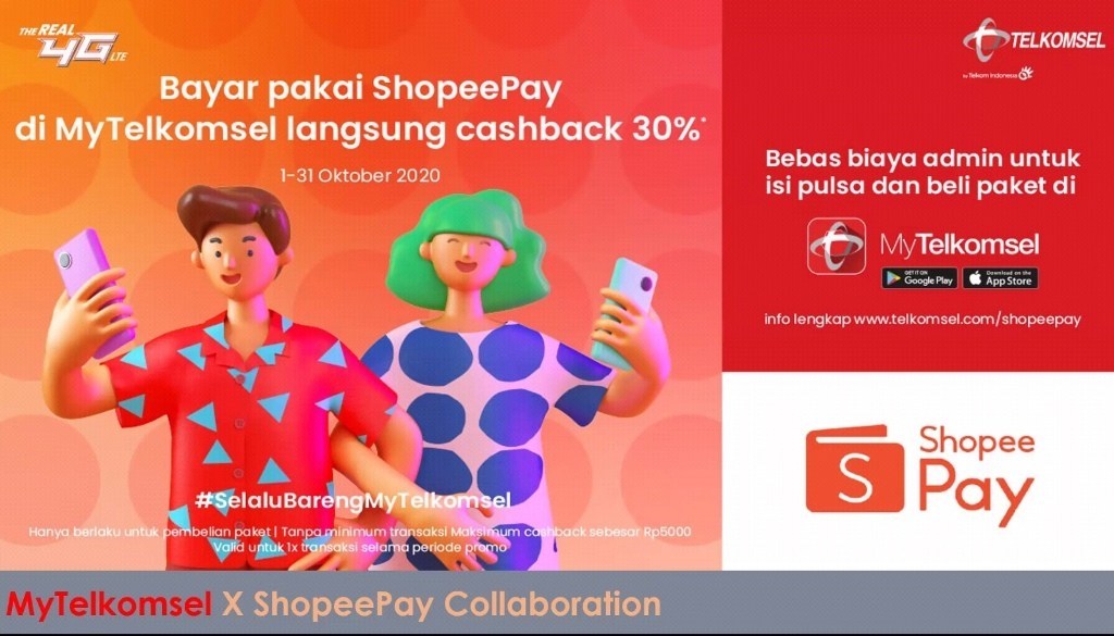 Melalui kerja sama ini, para pelanggan Telkomsel dapat memilih ShopeePay sebagai salah satu metode pembayarannya untuk pembelian pulsa dan paket data. Untuk meningkatkan antusiasme masyarakat, ShopeePay juga hadirkan program cashback hingga 30% untuk pembelian Paket Internet seperti OMG, Combo Sakti, Ketengan; Paket SMS, Paket Roaming, Paket Telepon, hingga Paket Entertainment.