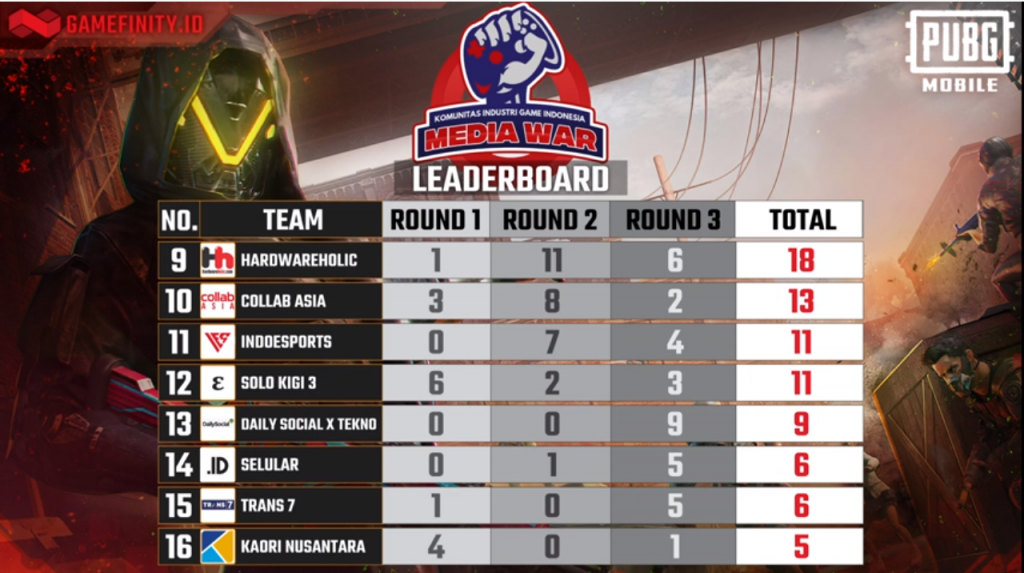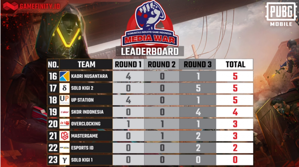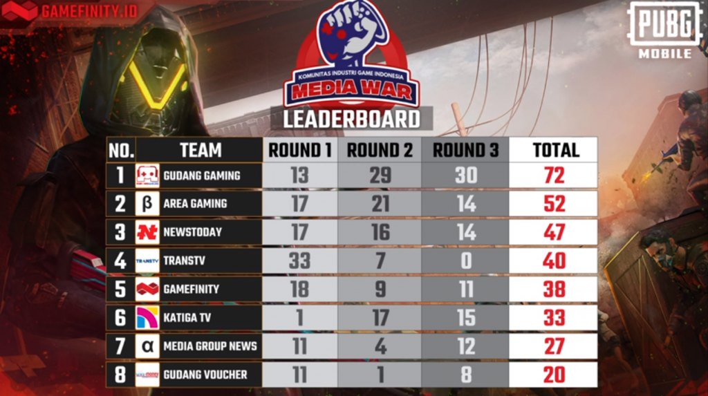 Dengan dipandu acaranya di Media Wars bersama Caster Gensshin dan Auraniqia, dan Akhirnya perang antar media di PUBGM ini dimenangkan oleh tim dari Gudang Gaming dengan total nilai 72 sebagai juara pertama, kemudian disusul dengan Area Gaming sebagai Juara ke-2 dengan total nilai 52, dan juara 3 dengan total nilai 47 dipegang oleh tim News Today.