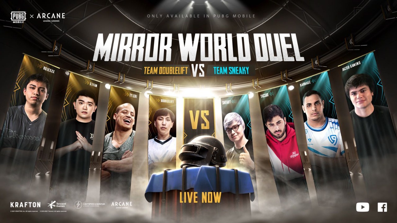 Hardwareholic– PUBG MOBILE, salah satu game mobile paling populer di dunia, akan menjadi tuan rumah bagi dua bintang League of Legends, Zachary ‘Sneaky’ Scuder dan Yiliang “Doublelift” Peng, dalam showmatch yang mendebarkan pada mode bertema Arcane yang baru, Mirror World. Berlangsung sejak 18 Desember 2021 mulai pukul 08.00 pagi WIB, setiap bintang akan bekerjasama dengan pembuat konten League of Legends, antara Tyler 1 dan Yassuo, dan dua pemain pro teratas PUBG MOBILE, antara Xifan dan Karnage, serta kreator Rolex dan Jacob Gaming, dalam pertandingan yang juga diisi oleh 72 konten kreator PUBG MOBILE populer lainnya.