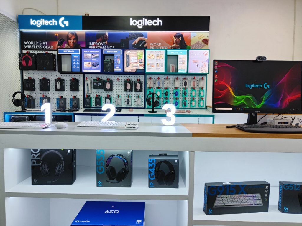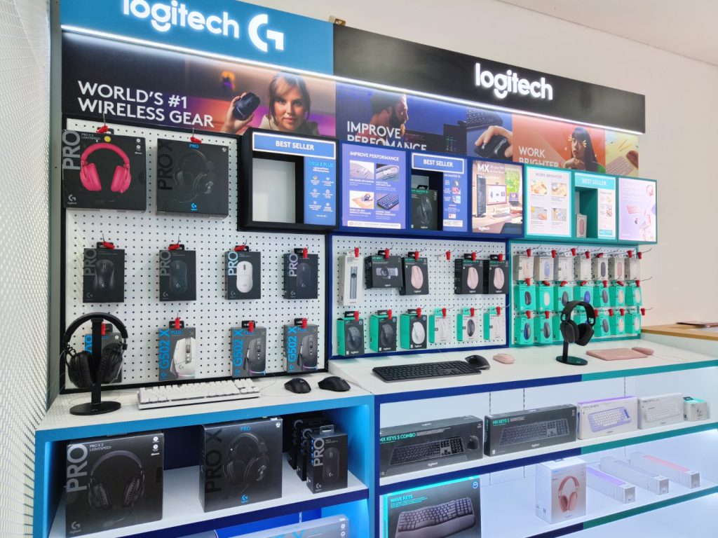 Begitu memasuki store, kami langsung disambut dengan desain interior yang modern dan minimalis, didominasi warna khas Logitech dengan pencahayaan yang nyaman. Tata letak produk sangat rapi dan informatif, membuat pelanggan mudah menjelajahi berbagai kategori mulai dari periferal komputer hingga perangkat gaming.