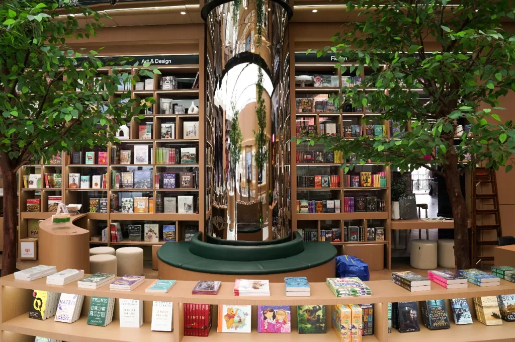 OPPO Experience Store Jakarta Garden City menawarkan beragam fasilitas unik, termasuk toko buku yang menyediakan berbagai buku impor dengan jenis Lifestyle, Art & Design, Fiction, dan Children Book, memadukan dunia teknologi dengan kultur literatur.