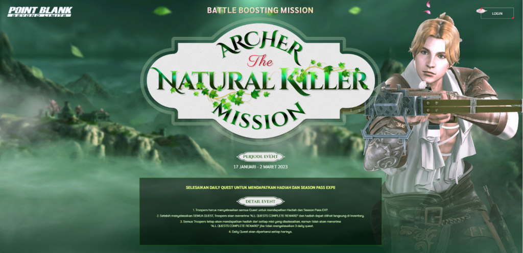 Untuk meningkatkan level Battle Pass, Troopers membutuhkan Season EXP. Ada beberapa cara untuk mendapatkan Season EXP, salah satunya dengan cara menyelesaikan misi dalam Daily Quest berjudul Archer Natural Killer Mission yang terdapat di situs Point Blank. Daily Quest ini menawarkan hadiah utama Season EXP yang dapat membantu Troopers meraih level berhadiah rewards yang diinginkan.