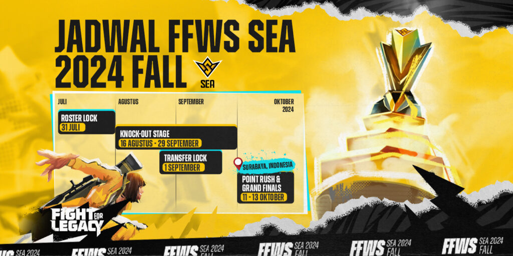 HardwareHolic – FFWS SEA 2024 Fall akan segera dimulai pada 16 Agustus 2024, menampilkan 18 tim esports terbaik Asia Tenggara yang bersaing memperebutkan gelar juara dan bagian terbesar dari hadiah senilai USD 300.000. Babak Knockout Stage akan berlangsung hingga 29 September 2024, sementara Point Rush dan Grand Finals akan digelar di Surabaya pada 11-13 Oktober 2024.