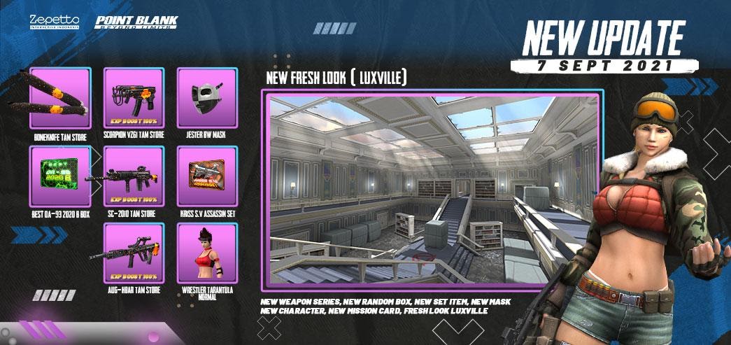 HardwareHolic.com – Point Blank melakukan pembaruan pada map Luxville. Map Luxville hadir dengan tampilan baru yang lebih segar. Perubahan pada warna dan desain ini pastinya akan memberikan sensasi bermain yang berbeda. Menemani pembaruan terbaru pada New Luxville, kami juga telah menyiapkan event bertajuk “Clean Up The Luxville”. Ada ekstra EXP 100% bagi kalian yang bermain di map ini mulai tanggal 7-13 September 2021, serta kalian bisa mendapatkan bonus berupa weapon SC-2010 Bold dengan durasi 3 hari apabila berhasil login dan bermain minimal 30 menit selama enam hari berturut-turut. Berikut tampilan terbaru dari map Luxville.