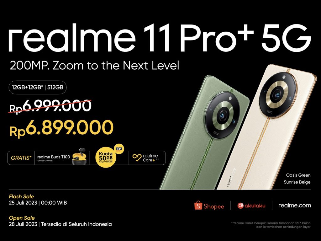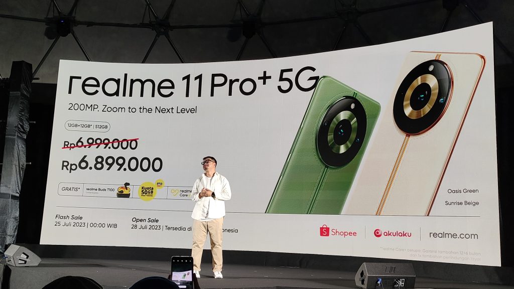 Hardwareholic- Sebagai brand Favoritnya Anak Muda, hari ini realme secara resmi meluncurkan realme 11 Pro Series 5G di Indonesia. realme 11 Pro+ 5G hadir dengan teknologi kamera 200MP dan 4x SuperZoom serta desain mewah Milan Luxury Design. Smartphone ini hadir dengan memori besar 12GB+12GB*|512GB dan bisa didapatkan dengan Rp6.899.000 pada periode Flash Sale. Sedangkan realme 11 Pro 5G hadir sebagai Pro Series terbaik dari realme yang hadir pertama dengan layar lengkung, desain mewah serta performa terbaik dari chipset Dimensity 7050, dan memori besar 8GB+8GB*|256GB, yang dijual dengan harga Rp5.499.000 pada periode Flash Sale.