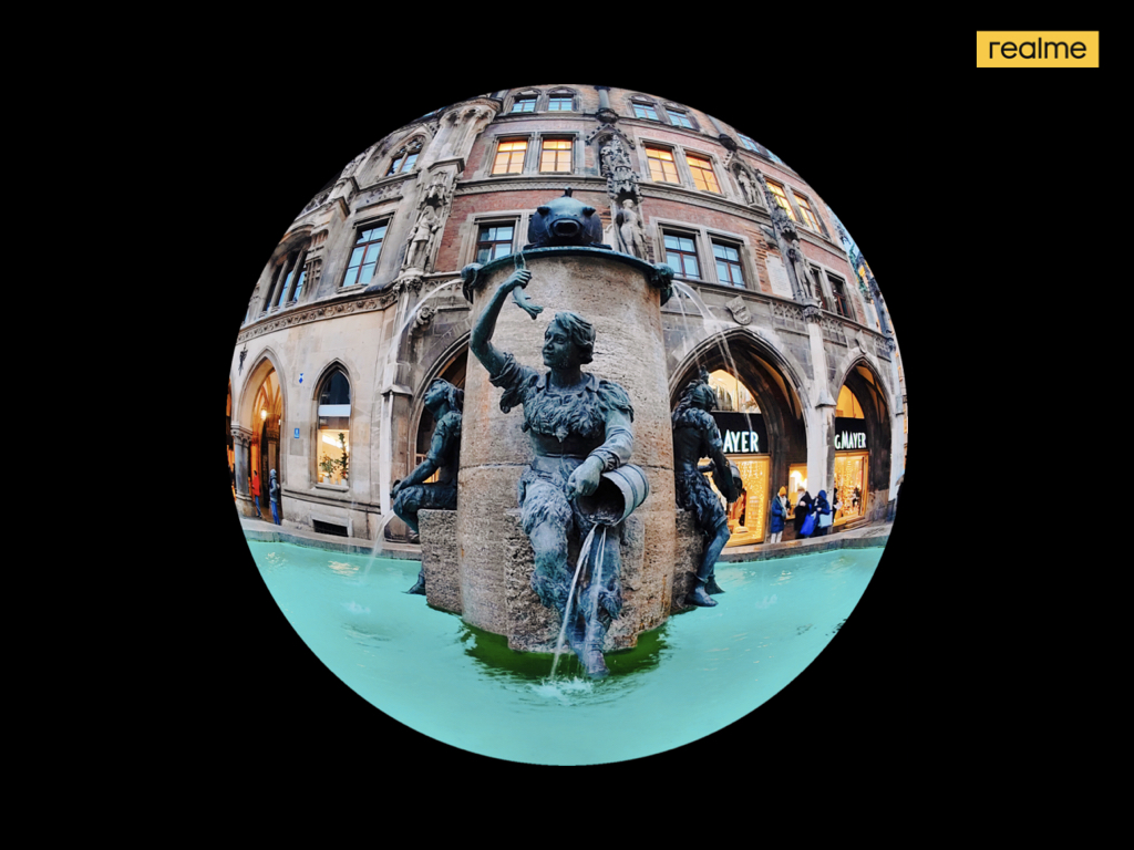 realme juga menjadi merek smartphone pertama yang mengembangkan mode fisheye smartphone di realme GT 2 Pro. Mode ini dapat menghasilkan perspektif yang kuat atau efek jarak pandang lebih panjang. Dengan bidang pandang yang luas, keseluruhan gambar menjadi lebih menarik secara visual.