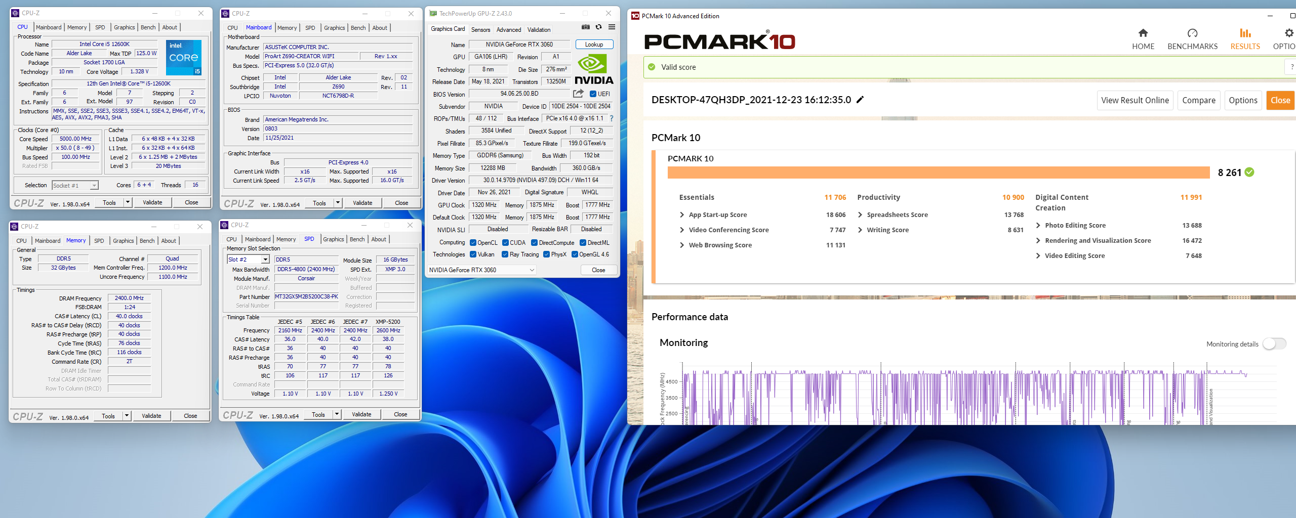 | Graphics: | Intel UHD Graphics 770 Palit GeForce RTX 3060 Dual LHR |