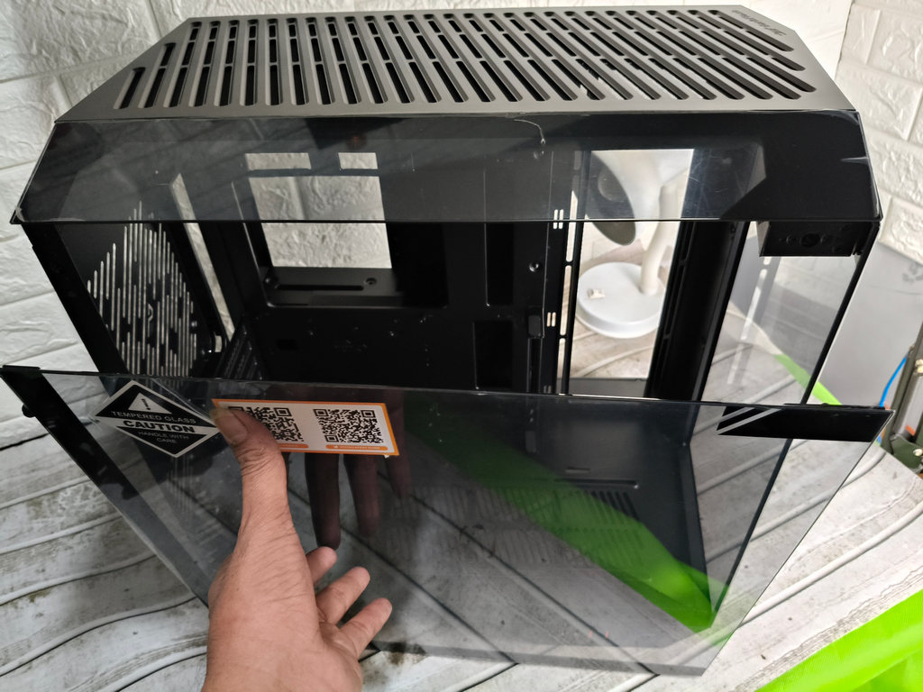 Sisi kiri, depan, dan sebagian atas case ini menggunakan material kaca sehingga kita bisa melihat semua komponen dalam case dengan jelas.
