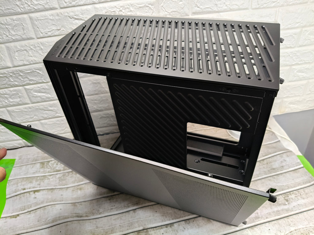 Dimensi bodi yang lebar pada DarkFlash DY470 dirasa lumrah saat ini. serta dimensi case ini mencapai 49,7 x 29,8 x 47,3 cm dan case ini tergolong cukup berat , Selain karena punya model panoramic, casing ini juga punya desain Dual Chamber yang memiliki banyak benefit. Bagian atasnya menggunakan penutup berongga yang sudah berlapis dengan penyaring. Punya gaya yang terlihat keren, penutup ini mengusung motif yang unik. Penutup ini terkunci dengan baut yang terpasang pada sisi belakang, dan nantinya bisa dibuka untuk memasang komponen Air cooler.
