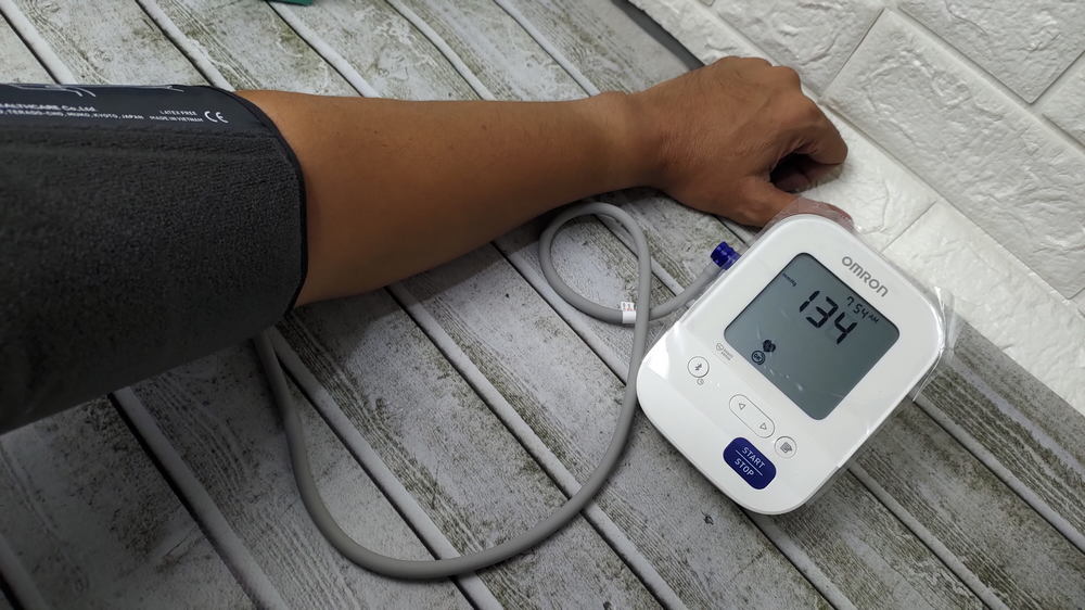 Setelah manset terpasang dengan benar tekan tombol Start pada tensimeter, lalu tunggu hasil sampai pengukuran selesai.