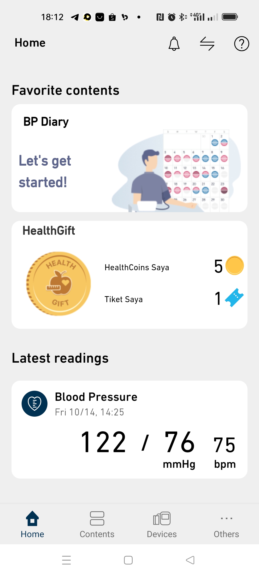 - Setelah selesai pengukuran, lihat pada beranda aplikasi omron connect