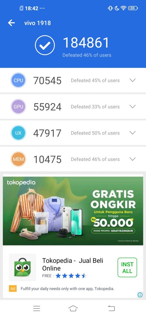 Antutu merupakan aplikasi benchmark yang paling sering digunakan sebagai tolok ukur performa sebuah perangkat berbasis Android. AnTuTu menmiliki beberapa pengujian performa dari perangkat berbasis Android berdasarkan empat poin pengujian yaitu Graphics, CPU, UX (user experience) dan RAM. AnTuTu yang digunakan dalam pengujian kali ini menggunakan AnTuTu 7.2.3.