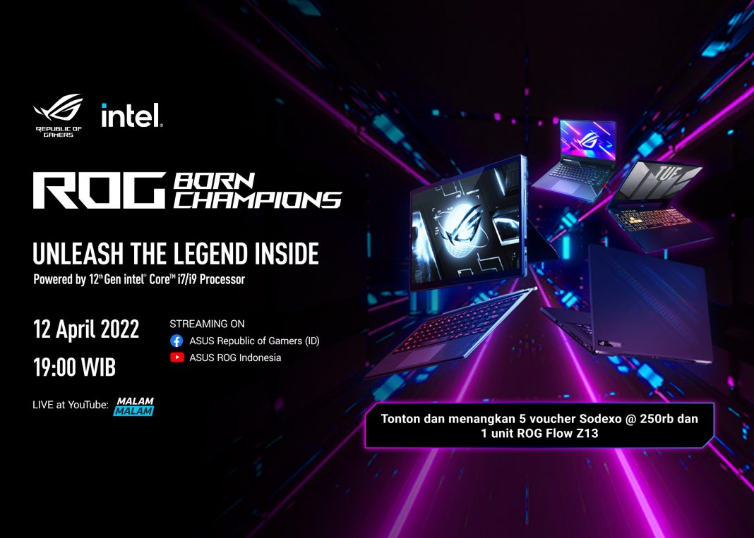 HardwareHolic.com – Jajaran laptop ROG terbaru yang telah ditenagai oleh prosesor High Performance 12th Gen Intel® Core™ akan hadir besok di Indonesia dalam acara peluncuran bertajuk Malam Malam Unleash The Legend Inside ROG Intel 12th Gen yang ditayangkan secara langsung di YouTube dan Facebook ASUS ROG Indonesia serta kanal YouTube MalamMalamNet. DI acara tersebut ASUS akan memperkenalkan tiga laptop gaming ROG terbaru yaitu laptop para gamer e-sports ROG Strix SCAR 15/17, laptop gaming 16-inci ROG Zephyrus M16, serta laptop sekaligus tablet gaming paling powerful di dunia ROG Flow Z13.
