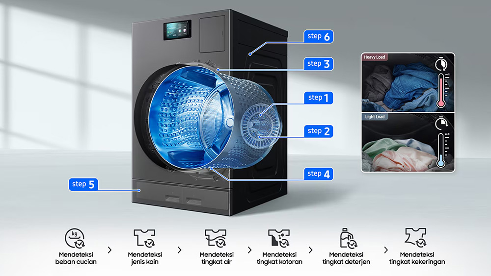 Teknologi tersebut membuat pengguna tidak perlu lagi melakukan banyak pengaturan manual. Mesin akan menyesuaikan kebutuhan pencucian secara otomatis demi hasil optimal sekaligus menjaga efisiensi penggunaan sumber daya.