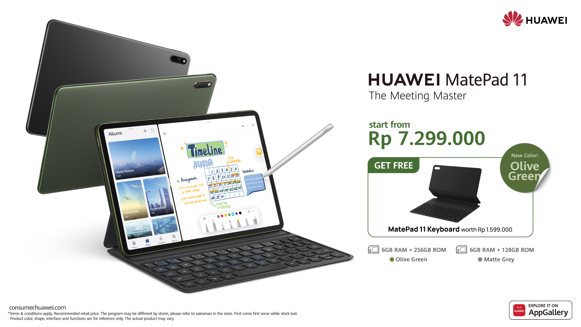 Patrick Ru, Country Head HUAWEI CBG Indonesia, menjelaskan “Huawei percaya bahwa produktivitas merupakan suatu hal yang dapat selalu kami kembangkan, dimulai dengan kenyamanan gadget yang digunakan hingga dampaknya pada peningkatan gaya penampilan kita Memahami hal ini, desain menjadi salah satu aspek penting pada HUAWEI MatePad 11, di mana dengan dukungan fitur-fitur mutakhir, akan memberikan pengalaman terbaik dan fleksibilitas bagi pengguna. Selain itu, Huawei berusaha untuk menyediakan beragam pilihan dalam mendukung tampilan canggih dan profesional bagi Huawei Fans. Oleh karena itu, kami tidak sabar untuk memperkenalkan warna terbaru dari HUAWEI MatePad 11.”