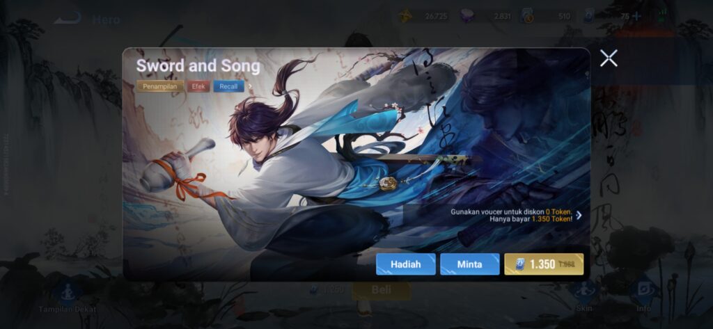 Skin “Sword and Song” menawarkan tampilan yang elegan dan artistik untuk Li Bai, menggabungkan seni bela diri klasik dengan harmoni musik yang memukau. Skin ini hanya akan tersedia untuk waktu yang terbatas, menjadikannya incaran para kolektor dan pemain yang ingin menambahkan sentuhan keanggunan pada hero favorit mereka.