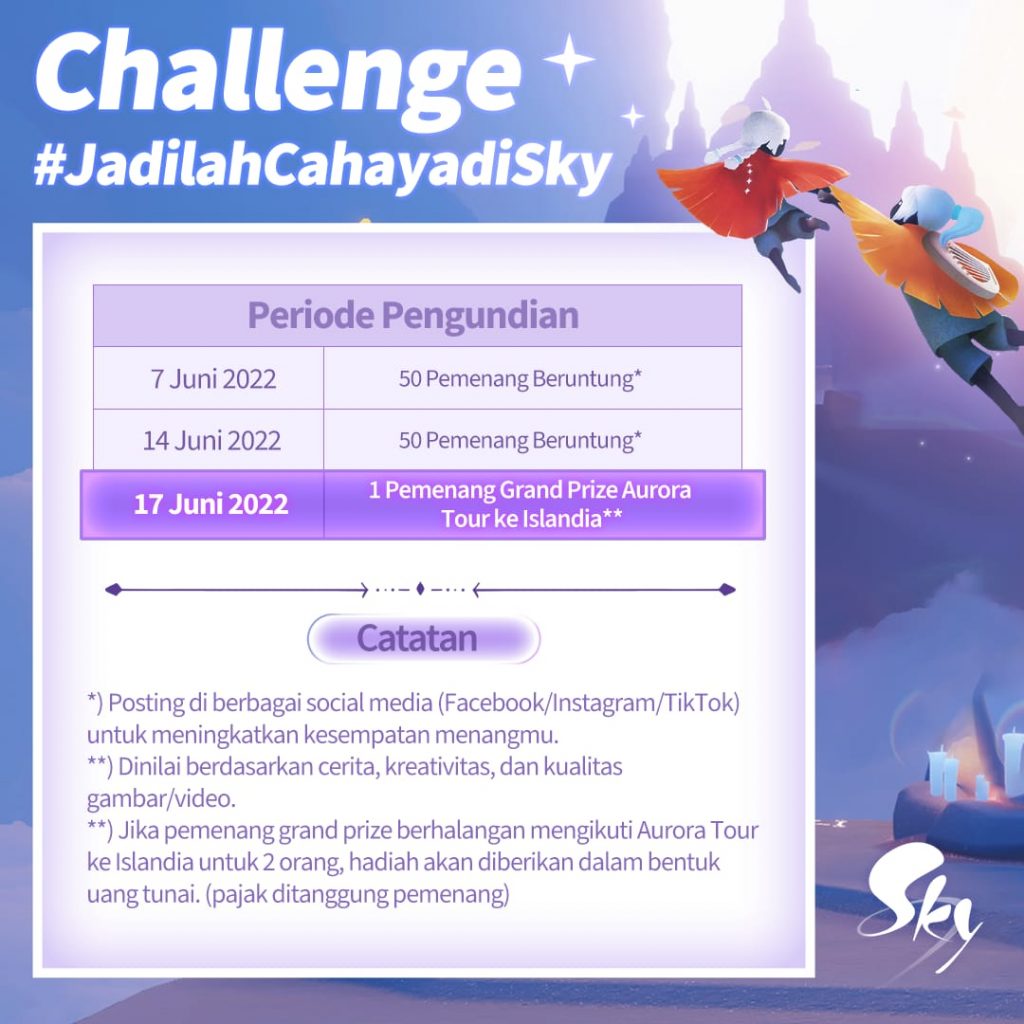 Jangan lupa tag temanmu dalam postingan tersebut, Informasi lebih lanjut tentang tantangan #JadilahCahayadiSky bisa dilihat di akun resmi Facebook, Instagram, Tiktok dan Youtube.