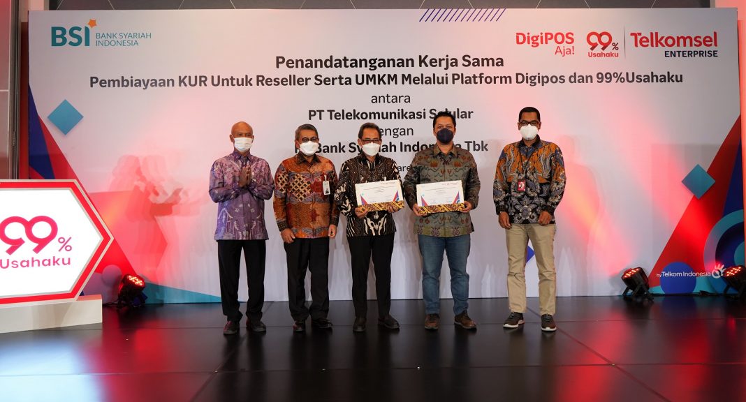 Hardwareholic – Telkomsel dan Bank Syariah Indonesia (BSI) menjalin kerja sama untuk menghadirkan kemudahan akses Kredit Usaha Rakyat (KUR) Syariah melalui platform digital DigiPOS dan 99% Usahaku dari Telkomsel guna mendukung pertumbuhan Reseller dan Usaha Mikro, Kecil, dan Menengah (UMKM) di Indonesia. Perjanjian Kerja Sama Program Pemberian Referensi Pembiayaan KUR Syariah antara kedua perusahaan yang ditandatangani di Jakarta (7/3), menawarkan kemudahan dan fleksibilitas terhadap akses permodalan berbasis Syariah dengan margin setara 6 persen per tahun dan plafon kredit hingga 500 juta Rupiah.