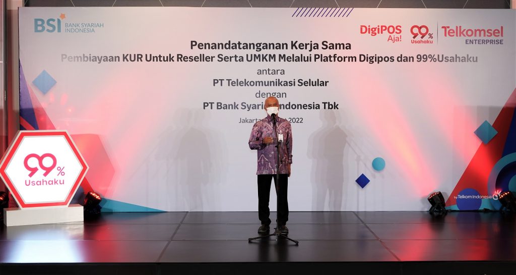 Direktur Sales Telkomsel Adiwinahyu B. Sigit mengatakan, “Guna menguatkan dukungan terhadap Mitra Reseller dan UMKM dalam pemanfaatan akses digital terhadap permodalan, Telkomsel dan BSI melakukan kerja sama dalam Program Pemberian Referensi Pembiayaan Kredit Usaha Rakyat (KUR) Syariah. Kerja sama ini sekaligus menjadi perwujudan komitmen Telkomsel sebagai leading digital company dalam menghadirkan solusi digital seperti DigiPOS Aja! dan 99% Usahaku yang dapat meningkatkan produktivitas dan mempermudah aktivitas bisnis pelanggan. Mengingat segmen Reseller dan UMKM berkontribusi hingga 61,97 persen dari total Pendapatan Domestik Bruto (PDB) Indonesia pada 2021, kami berharap kerjasama ini bisa mendukung mereka untuk terus maju dan mengembangkan usaha lebih lanjut dengan akses permodalan berbasis Syariah, terutama untuk tetap dapat bertahan di tengah tantangan masa pandemi COVID-19 yang masih berlangsung.”