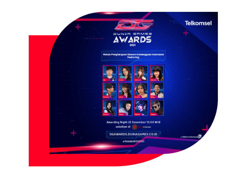 Hardwareholic – Telkomsel melalui Dunia Games resmi menggelar acara puncak penghargaan Dunia Games Awards (DGA) 2021 di Jakarta yang disiarkan live secara eksklusif di aplikasi MAXstream, channel YouTube Dunia Games dan Telkomsel, pada kamis, (23/12). Pada acara puncak ini, Telkomsel mengumumkan dan memberikan penghargaan kepada para pemenang di kategori Lifetime Achievement dan 16 kategori DGA 2021 lainnya yang merupakan hasil pilihan langsung masyarakat melalui metode voting di situs dgawards.duniagames.co.id pada 1-14 Desember 2021.