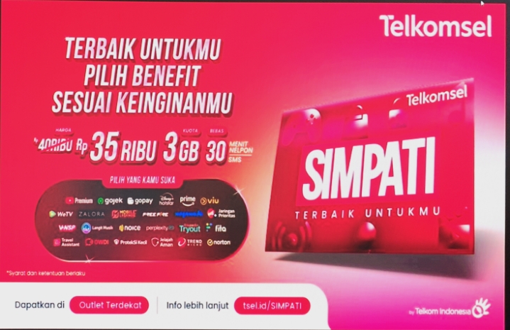 Kartu perdana SIMPATI dibanderol seharga Rp35.000 dengan kuota dasar 3 GB untuk 30 hari, dan memberikan kebebasan bagi pelanggan untuk memilih 1 dari 24 benefit digital lifestyle melalui aplikasi MyTelkomsel. Beberapa pilihan benefit unggulan antara lain: