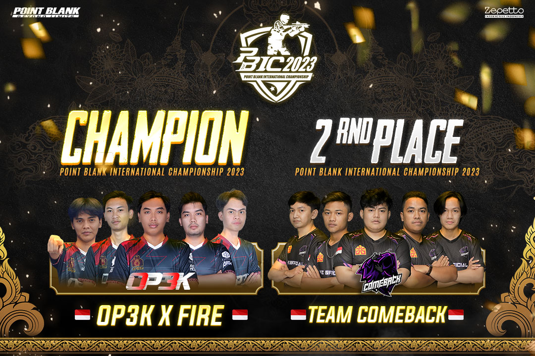 HardwareHolic.com – Ajang Point Blank International Championship (PBIC) 2023 yang digelar di Samyang Mitrtown Hall, Bangkok, Thailand pada tanggal 18-19 Maret 2023 telah selesai dilaksanakan. Pada turnamen bergengsi tersebut, kedua tim yang mewakili Indonesia berhasil mengawinkan gelar. Tim OP3K XFire sukses meraih gelar Champion PBIC 2023, dan Tim Comeback menyandang gelar 2nd Place Winner setelah menyingkirkan tim-tim dari berbagai negara yang berpartisipasi dalam turnamen tingkat internasional untuk game FPS Point Blank ini. Kemenangan OP3K Xfire mencetak sejarah dengan menjadi tim Indonesia ketiga yang pernah menjadi Champion turnamen PBIC yang telah bergulir 10 keli sejak tahun 2011.
