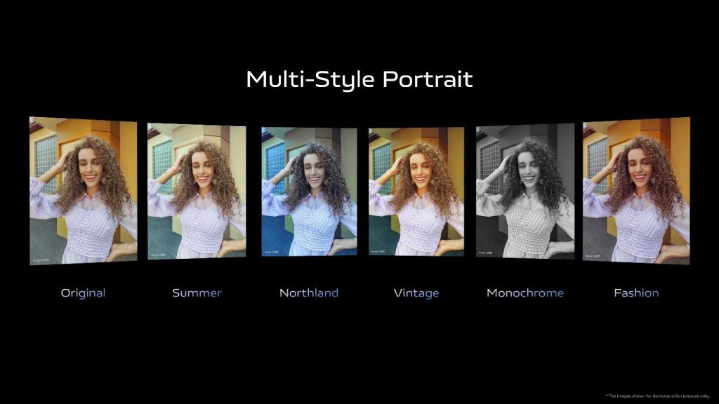 Fitur Multi-Style Portrait pada mode kamera portrait vivo V21 menyediakan beberapa pilihan pendukung pengguna untuk memaksimalkan mobile photography, yaitu Style, Beauty, dan Bokeh. Pada menu Style, terdapat 9 pilihan tone warna yang dapat dipilih pengguna untuk memberikan efek yang berbeda-beda pada hasil foto.